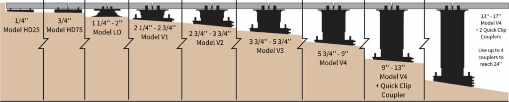 - Adjusts to heights ranging from 2.25” to 36”