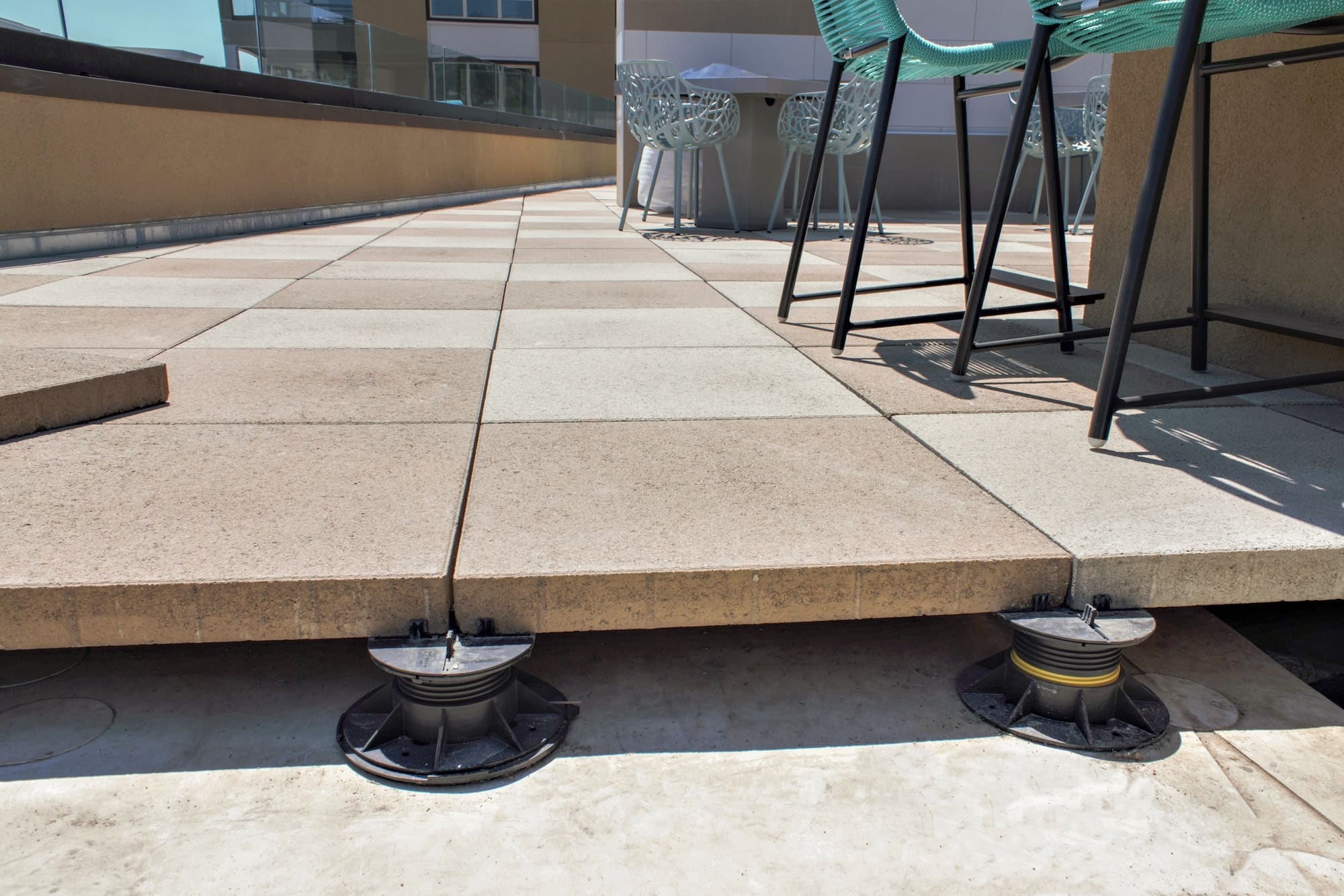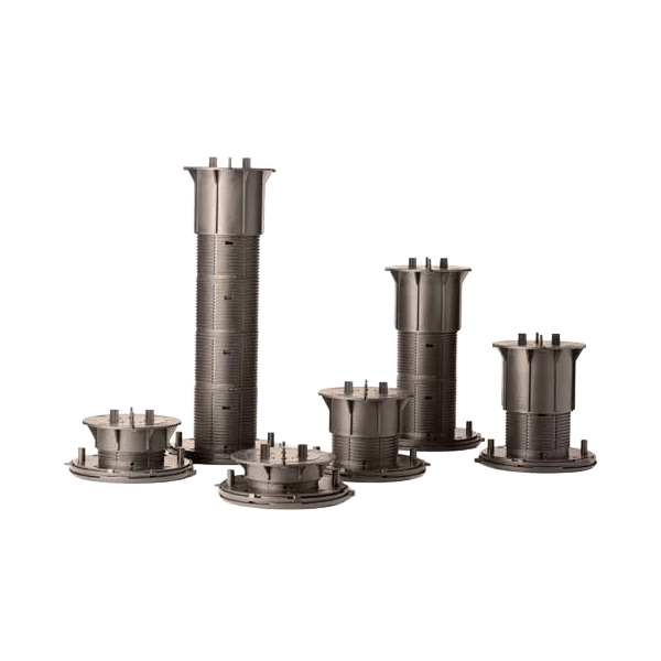 The Bison Versadjust (V-Series) Adjustable Pedestal line is a system for elevating and leveling floor tiles on a variety of surfaces. Pair with compatible ORCO porcelain tiles, natural stone tiles, or large pavers to implement effective raised decks and rooftop plazas. Precise spacer tabs allow for deck drainage and uniform paver spacing, while the screw-to-adjust height settings assure a perfectly level deck.
